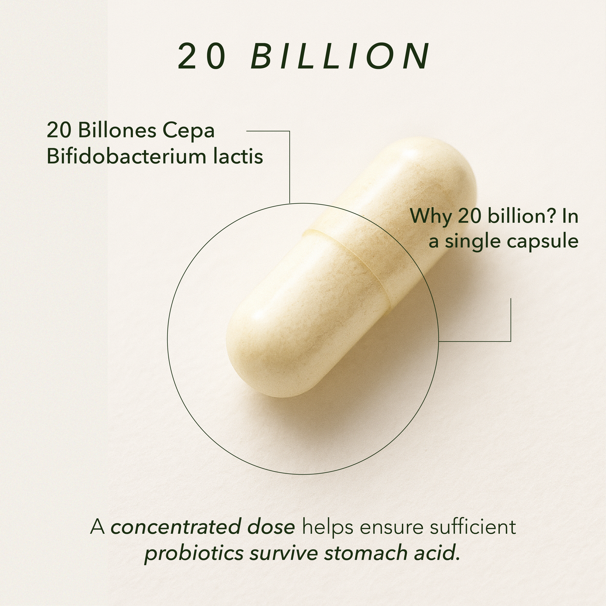Bifidobacteium Lactis 20 Billones de UFC por porción. Fórmula con una concentración ideal de probióticos.